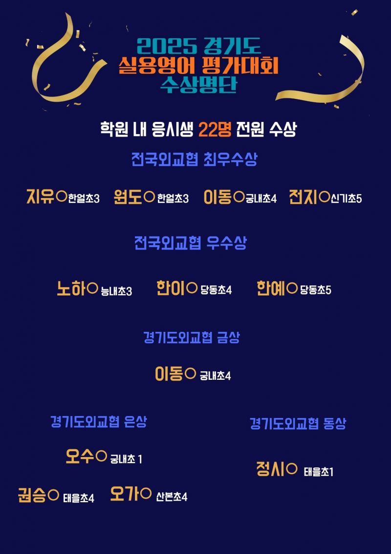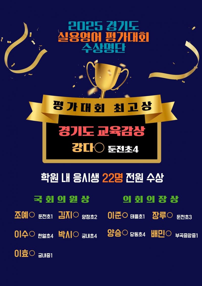 ≪1등급 A영어≫ 축하합니다! 실용영어 능력평가 경기도 교육감상 수상!!